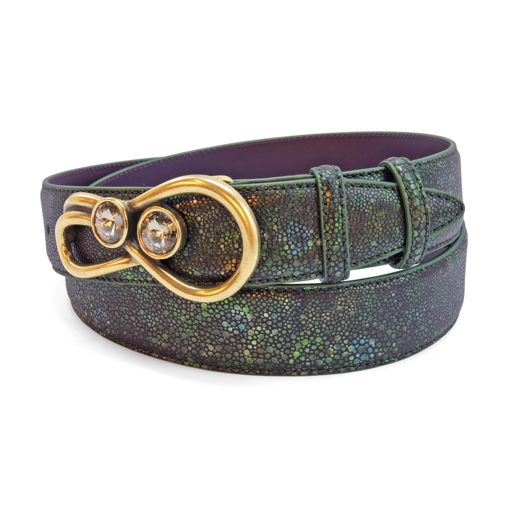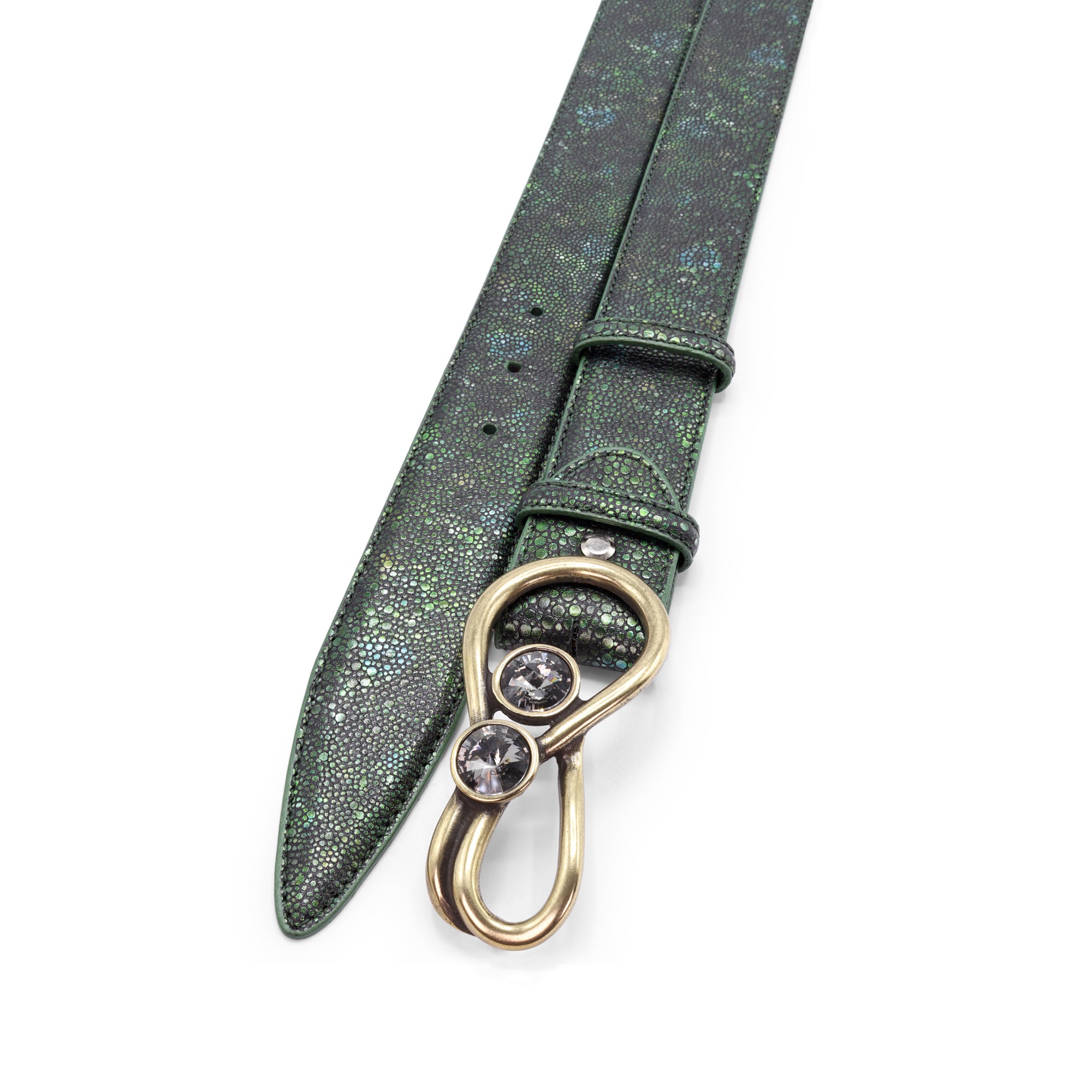 {"id":15379702808950,"title":"Metallic Moss Green Mock Stingray Crystal Loop Belt","handle":"metallic-moss-green-mock-stingray-crystal-loop-belt","description":"\u003cp\u003eSometimes you want a belt that feels effortlessly elegant, where the buckle flows like jewellery. That's exactly what I set out to create here. We've crafted this from metallic mock stingray leather in moss green—a finish that never sits still. It shifts through deep forest tones to luminous jade, with flashes of gold and blue appearing as light moves across the surface. It's constantly changing, endlessly captivating.\u003cbr\u003eThe gold loop buckle is all about flow and grace. I love how those curves create an open frame design that feels light and airy, almost sculptural. We've set two large round Swarovski crystals within the loops—they catch light beautifully with every movement, adding just the right amount of sparkle. The warmth of that gold is everything here. It brings out the richest tones in the leather, those golden-greens and amber notes that make this moss colour so special.\u003cbr\u003eThere's genuine fluidity to this buckle design. It doesn't feel static—those curved lines flow into each other with organic grace. The open frame lets the leather show through, creating visual interest without overwhelming. It's refined without being formal, glamorous without feeling overdone.\u003cbr\u003eStyle it with tailored trousers and a silk blouse for effortless sophistication, or let it define the waist of a flowing midi dress. It brings polish to dark denim and elevated knits, adds warmth to monochrome outfits that need a touch of colour. This is a belt that works as hard in the daytime as it does for evening.\u003cbr\u003eElegant, fluid, and just the right amount of sparkle. A real head turner of a belt that will make any outfit extra special!\u003c\/p\u003e","published_at":"2025-10-13T16:29:45+01:00","created_at":"2025-10-10T16:18:06+01:00","vendor":"Elliot Rhodes","type":"belt","tags":["AW25","Buckle-Finish-Gold","Buckle-Type-Crystals","Gender-Women","Material-Animal Effect","Style-Smart Casual","Width-40mm"],"price":21500,"price_min":21500,"price_max":21500,"available":true,"price_varies":false,"compare_at_price":null,"compare_at_price_min":0,"compare_at_price_max":0,"compare_at_price_varies":false,"variants":[{"id":56419784163702,"title":"Moss","option1":"Moss","option2":null,"option3":null,"sku":"V965 765S","requires_shipping":true,"taxable":true,"featured_image":{"id":78681450676598,"product_id":15379702808950,"position":1,"created_at":"2025-10-13T16:29:12+01:00","updated_at":"2025-10-13T16:29:17+01:00","alt":"Moss","width":2000,"height":2000,"src":"\/\/elliotrhodes.com\/cdn\/shop\/files\/V965765S_1.jpg?v=1760369357","variant_ids":[56419784163702]},"available":true,"name":"Metallic Moss Green Mock Stingray Crystal Loop Belt - Moss","public_title":"Moss","options":["Moss"],"price":21500,"weight":0,"compare_at_price":null,"inventory_management":"shopify","barcode":null,"featured_media":{"alt":"Moss","id":67065994969462,"position":1,"preview_image":{"aspect_ratio":1.0,"height":2000,"width":2000,"src":"\/\/elliotrhodes.com\/cdn\/shop\/files\/V965765S_1.jpg?v=1760369357"}},"requires_selling_plan":false,"selling_plan_allocations":[]}],"images":["\/\/elliotrhodes.com\/cdn\/shop\/files\/V965765S_1.jpg?v=1760369357","\/\/elliotrhodes.com\/cdn\/shop\/files\/V965765S_2.jpg?v=1760369357","\/\/elliotrhodes.com\/cdn\/shop\/files\/V965765S_3.jpg?v=1760369357","\/\/elliotrhodes.com\/cdn\/shop\/files\/Purple_Lining_with_ER_Sayings.jpg?v=1763562325","\/\/elliotrhodes.com\/cdn\/shop\/files\/gift-box_da682f46-9532-4da7-8eff-aaf4144f8510.jpg?v=1763562325"],"featured_image":"\/\/elliotrhodes.com\/cdn\/shop\/files\/V965765S_1.jpg?v=1760369357","options":["Colour"],"media":[{"alt":"Moss","id":67065994969462,"position":1,"preview_image":{"aspect_ratio":1.0,"height":2000,"width":2000,"src":"\/\/elliotrhodes.com\/cdn\/shop\/files\/V965765S_1.jpg?v=1760369357"},"aspect_ratio":1.0,"height":2000,"media_type":"image","src":"\/\/elliotrhodes.com\/cdn\/shop\/files\/V965765S_1.jpg?v=1760369357","width":2000},{"alt":"Moss","id":67065995002230,"position":2,"preview_image":{"aspect_ratio":1.0,"height":2000,"width":2000,"src":"\/\/elliotrhodes.com\/cdn\/shop\/files\/V965765S_2.jpg?v=1760369357"},"aspect_ratio":1.0,"height":2000,"media_type":"image","src":"\/\/elliotrhodes.com\/cdn\/shop\/files\/V965765S_2.jpg?v=1760369357","width":2000},{"alt":"Moss","id":67065995034998,"position":3,"preview_image":{"aspect_ratio":1.0,"height":2000,"width":2000,"src":"\/\/elliotrhodes.com\/cdn\/shop\/files\/V965765S_3.jpg?v=1760369357"},"aspect_ratio":1.0,"height":2000,"media_type":"image","src":"\/\/elliotrhodes.com\/cdn\/shop\/files\/V965765S_3.jpg?v=1760369357","width":2000},{"alt":"Packaging","id":66098978423158,"position":4,"preview_image":{"aspect_ratio":1.0,"height":2000,"width":2000,"src":"\/\/elliotrhodes.com\/cdn\/shop\/files\/Purple_Lining_with_ER_Sayings.jpg?v=1763562325"},"aspect_ratio":1.0,"height":2000,"media_type":"image","src":"\/\/elliotrhodes.com\/cdn\/shop\/files\/Purple_Lining_with_ER_Sayings.jpg?v=1763562325","width":2000},{"alt":"Packaging","id":65653452833142,"position":5,"preview_image":{"aspect_ratio":1.0,"height":1000,"width":1000,"src":"\/\/elliotrhodes.com\/cdn\/shop\/files\/gift-box_da682f46-9532-4da7-8eff-aaf4144f8510.jpg?v=1763562325"},"aspect_ratio":1.0,"height":1000,"media_type":"image","src":"\/\/elliotrhodes.com\/cdn\/shop\/files\/gift-box_da682f46-9532-4da7-8eff-aaf4144f8510.jpg?v=1763562325","width":1000}],"requires_selling_plan":false,"selling_plan_groups":[],"content":"\u003cp\u003eSometimes you want a belt that feels effortlessly elegant, where the buckle flows like jewellery. That's exactly what I set out to create here. We've crafted this from metallic mock stingray leather in moss green—a finish that never sits still. It shifts through deep forest tones to luminous jade, with flashes of gold and blue app